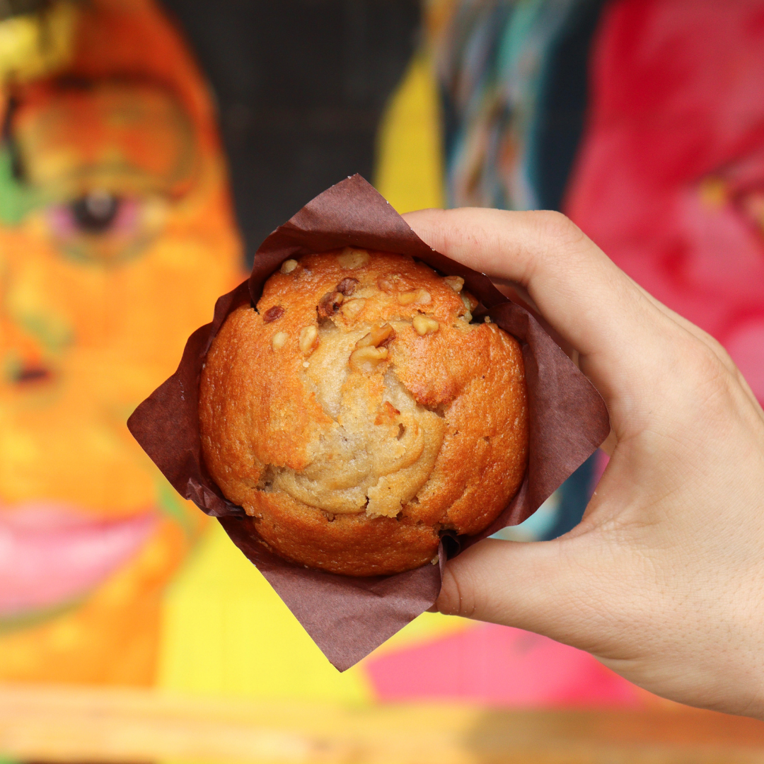 Double chocolate and banana nut muffins from the Opus Kitchen. You’ll receive a mixed variety. Available every day.